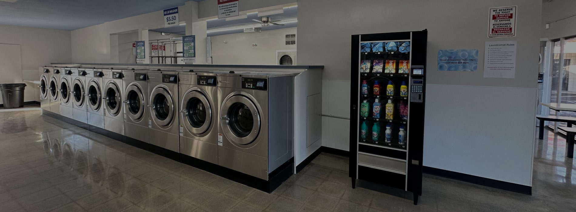 Regular maintenance keeps the laundromat clean, organized, and welcoming.